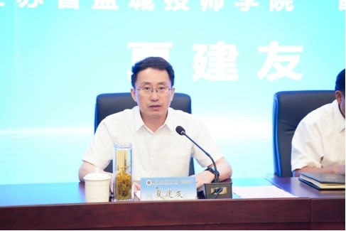 开班仪式现场 夏校长对来自全国各地的60位学员在这个美好季节来到东方湿地之都、仙鹤神鹿世界——盐城表示热烈的欢迎!期间还介绍了我校的有关情况,主要包含学校拥有的国家级集训基地、世赛获奖概况以及我院牵头的电气维修专业职业功能模块开发和试点工作情况等。他重点提出,我校紧紧围绕控量提质、内涵发展的战略目标,大力推进人才培养模式、人才培养质量和社会服务能力“三大”高水平建设,全力推动学校各项事业高质量发展等要求。